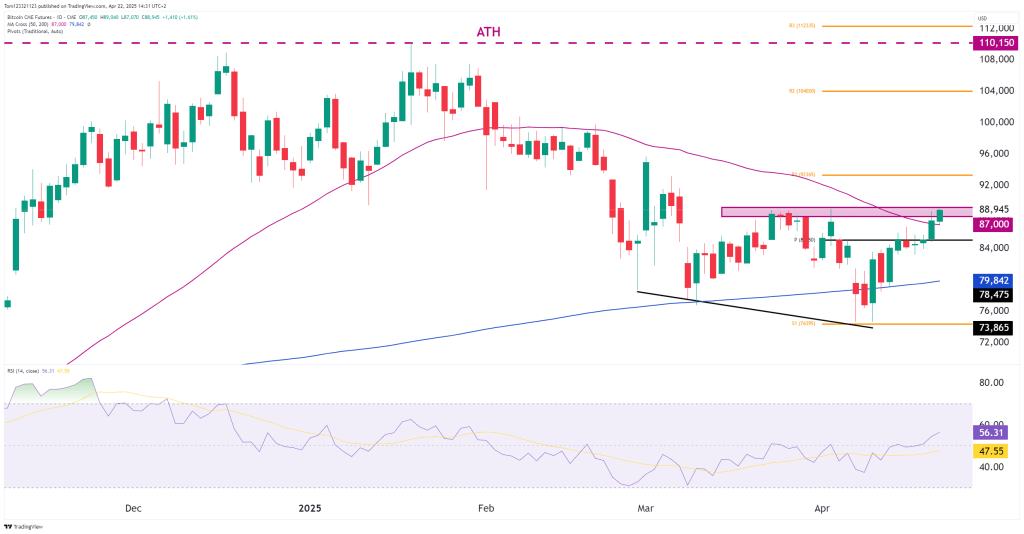 - Failure to break above 89,000 could trigger a retest of 84,650.