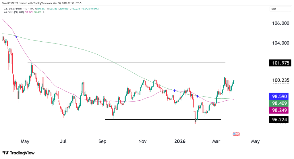 The Dollar is holding steady and trying to push higher, mostly because of global tensions. It hasn’t made a big move recently, but staying above 100 is a good sign for buyers. If that level keeps holding, there’s a chance it could move up toward the 102 area and possibly higher.